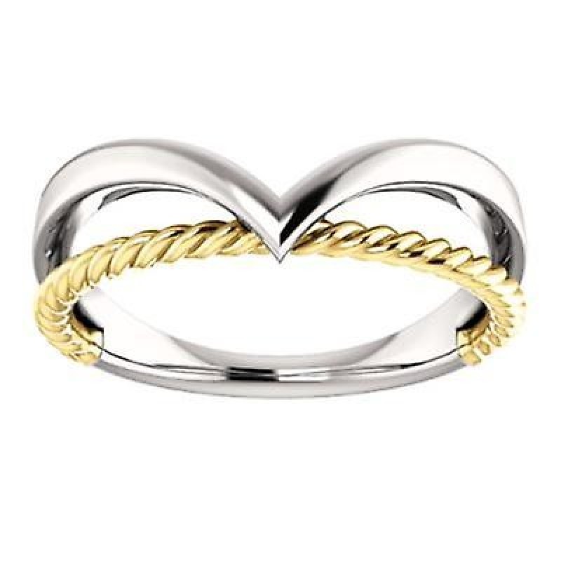Negative Space Rope Ring in 14k White Gold and Polished Yellow Gold, Size 6.5, Gift