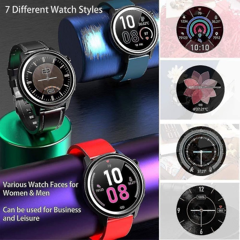 VARIOUS FUNCTIONS such as time and date display, weather display, call and message notification, step counter, calorie consumption record, sports mileage record, 7 sports modes, heart rate monitor, ECG / PPG / Ai diagnosis, camera control, sleep monitor, sedentary reminder, stopwatch, breathing training. 24-HOUR BODY TEMPERATURE MONITOR It can measure your body temperature for 24 hours, the body temperature data can be saved in the [SmartHealth] APP, you can monitor your body temperature and monitor your health at any time. SPORTS AND HEALTH MANAGEMENT Track multiple sports and health data measurement: Multi-sport mode, pedometer, distance, calories; ECG / PPG / AI diagnosis / heart rate monitor. Pay attention to your health all the time. The sports and health data of the smart watch are for reference only, please listen to the doctor's advice. SLEEP MONITOR & WEATHER DISPLAY Sleep monitoring function: When you fall asleep, the smart watch will automatically calculate your sleep quality and sync the data to the app. You can know your sleep quality. The weather display function will display current weather information and air quality. (Note: You need to get your phone's location information to view the weather.) IP68 WATERPROOF & MAGNETIC CHARGING IP68 has excellent waterproof performance and can meet most daily needs. (Note: Do not immerse it in deep water for a long time. Also do not use it in hot springs or hot baths.) Magnetic suction charging, charging time is about 3-4 hours, using time is about 5-13 days, standby 20-40 days.