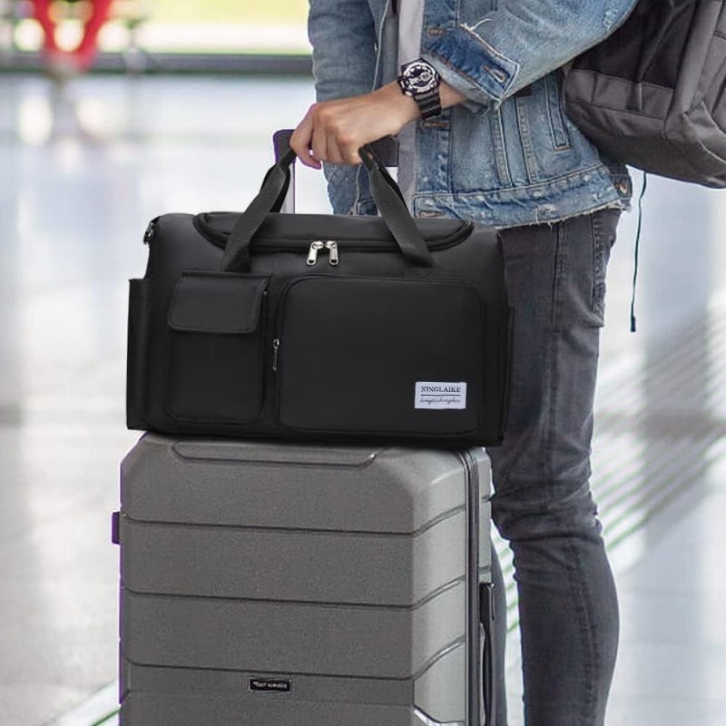 - Make a statement wherever your adventures take you with our Stylish Waterproof Multi-Task Travel Gym Duffel Bag.
